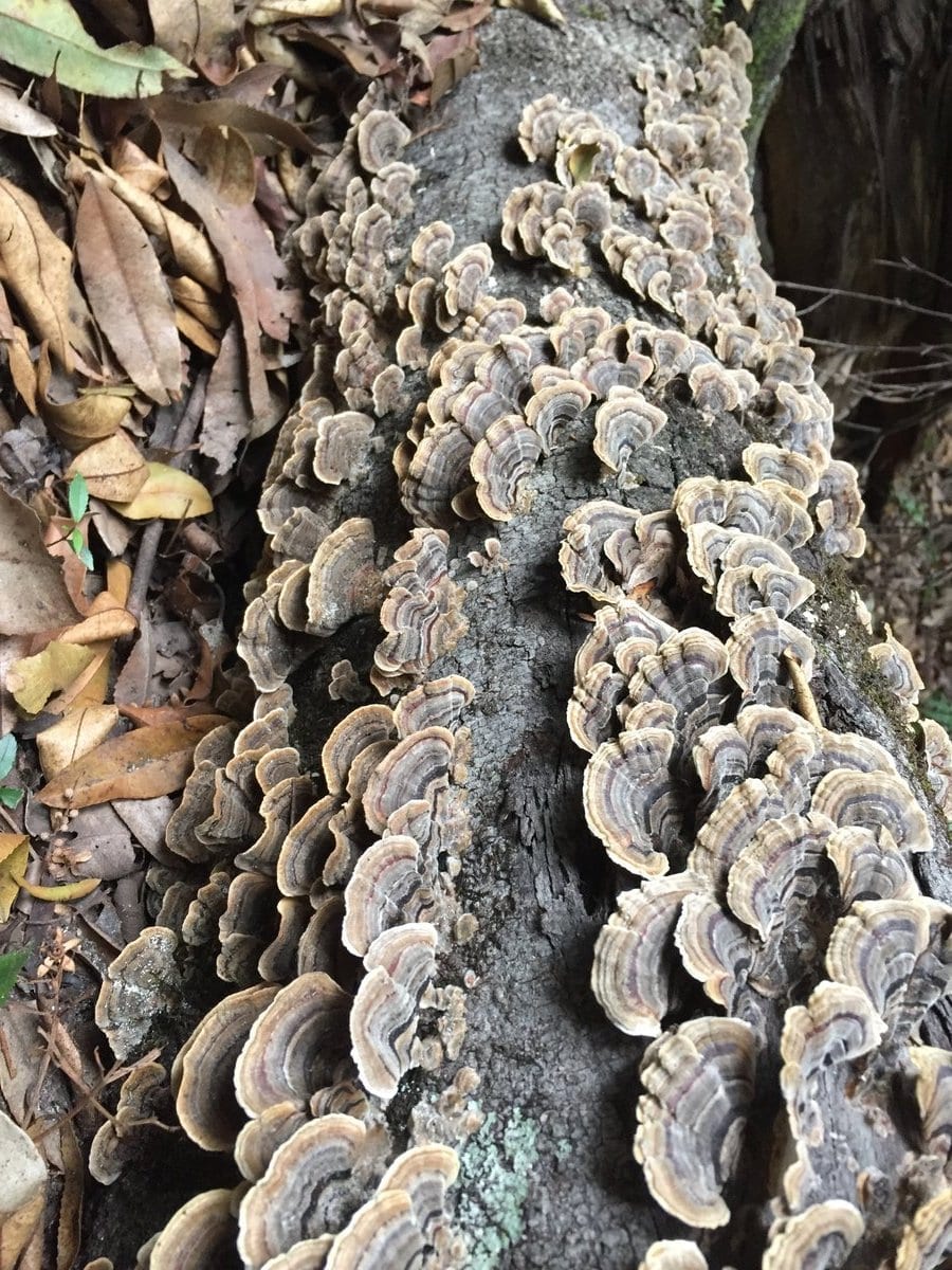 The Turkey Tail mushroom is an extremely abundant mushroom found predominantly in temperate forests. The name of the mushroom originates from its appearance, as the mushroom fruiting body resembles ruffled feathers of a turkey’s tail as it grows on decaying trees.